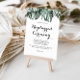 Ce panneau de cérémonie vert tropical blanc floral débranché est parfait pour une mariage ou une douche nuptiale rustique. Le design est composé de bouquets feuille de palmiers verts avec de belles fleurs blanches.