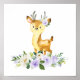 Poster Cerfs, Animaux De Bois, Boho, Fleurs Violettes