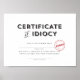Vous avez été un idiot et vous devez vous excuser. Faites-le mémorable et drôle avec le certificat officiel d'Idiocèse. Cette version est une affiche 8.5 x 11 adaptée à la mise en forme.