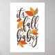 Ce design d'automne chaleureux et accueillant comprend l'expression "It's Fall Baby" dans un script fluide et élégant qui dégage un sentiment de chaleur et d'excitation pour la saison. Le texte est magnifiquement entrelacé avec des feuilles d'automne colorées dans des tons orange, jaune et marron, capturant l'essence de la beauté naturelle de l'automne. Des points éparpillés autour du design apportent une touche ludique qui renforce l'atmosphère festive générale. La combinaison de la police de script et des feuilles dynamiques crée une composition dynamique et animée, parfaite pour célébrer l'arrivée de l'automne.