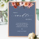 Honore tes proches qui ont passé avec cette élégante "cette chandelle brûle" en signe mariage de mémoire d'amour. Design avec des détails modernes de calligraphie manuscrite et une belle bordure fleurie avec des fleurs dans les tons bordeaux, roux, rose, pêche, champagne et jaune. Bleu arrière - plan attrayant. Personnalisez-le avec les noms du couple, et vous avez également la possibilité de customiser le message comme vous voulez. 10" x 8" est seulement notre taille par défaut, le panneau est disponible en plusieurs tailles.