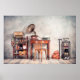 Poster Chaise ancienne, vieille machine à écrire, radio r