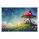 Poster Chalet de champignons enchanté dans une prairie rê