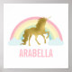 Une impression adorable pour nurserie présente une illustration vectorielle douce d'une licorne dorée et d'un arc-en-ciel.