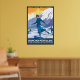 Une grande affiche de voyage de sports d'hiver pour Chamonix Mont Blanc. Une femme en patinage sur glace bleue à l'extérieur avec les montagnes dans l'arrière - plan. Une publicité pour Paris, Lyon, Méditerranée.