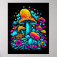 Art néon coloré avec champignons et fleurs bleus et roses et un arrière - plan noir.