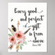 Chaque bon et parfait cadeau est de Above art print est un beau verset de la bible écrit en gris foncé et complété par des fleurs roses et aquarelles. Ce serait parfait pour la pépinière.