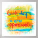 Ce design comporte la citation "Chaque jour est une nouvelle opportunité" écrite à la main en rouge, bleu, orange et rouge, avec une police de caractères de calligraphie sur un arrière - plan artistique abstrait.