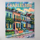 Poster Charleston Rainbow Row Van Gogh Style peinture à l