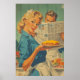Une joyeuse femme au foyer des années 1950 présente une délicieuse tarte tandis que son mari lit le journal, capturant l'Americana classique du milieu du siècle avec un charme vintage vibrant. Idéal pour les cartes de voeux nostalgiques.