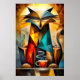 Poster Charming Cat - Philosophe cubiste avec café