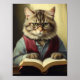 Poster chat anthropomorphe lecture d'un livre