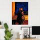 Cette affiche présente un magnifique chat en enfer de tortue doré, orange et marron assis sur un coussin rouge, regardant par la fenêtre dans un ciel bleu nuit. Elle projette une ombre sur le rebord en bois doré. J'ai numériquement amélioré ma photo originale pour obtenir un effet peintre.