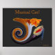 Poster d'art de chat original avec un chat gingembre regardant un poisson rouge dans un bol avec une touche musicale abstraite. Idéal pour les amoureux de les chats et les musiciens, il a été créé à partir de ma peinture en verre originale et peut être customisé avec votre propre texte. ©Annabel Potter