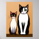 Poster dans l'illustration d'un chaton et chaton d'inspiration moderne du milieu du siècle, noir et blanc, sur un arrière - plan d'or moutarde