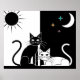 Une vue féline de ying-and-yang et de jour comme de nuit. Cette oeuvre originale aurait l'air géniale dans n'importe quelle maison d'amoureux des animaux (ou de n'importe qui).
