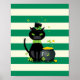 Poster Chat noir en cravate arc et casquette avec shamroc