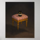 Cette affiche fantaisiste capture un minuscule chat noir aux yeux dorés assis fièrement au-dessus d'un tabouret rayé rose et violet. Les jambes dorées ornées et le charme ludique de style Ghibli en font un complément parfait à des espaces douillets d'inspiration imaginaire.