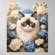 Poster Chat Ragdoll Avec Fleurs Bleues D'Hydrangée