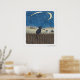 Poster Chat sur une clôture regardant le ciel nocturne au