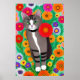 Poster Chats blancs et gris Whimsical et Fleur rouge