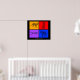 Achetez cette affiche de guépards aux couleurs orange, rouge, violet et bleu.