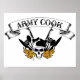 Pour les anciens combattants de l'Armée qui ont servi comme cuisiniers. Le design comprend un crâne grinçant avec casque, entouré de couteaux, de spatules, de cuillères et de M-16! Le texte dit "Army Cook" et votre choix d'opération Iraqi Freedom, Operation Enduring Freedom, Desert Storm, ou Vietnam.