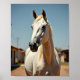 Photo d'un magnifique cheval américain parmi les maisons du Texas Un cheval d'origine arabe avec une belle couleur claire
