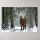 Poster Cheval Brown dans une forêt d'hiver avec chute de