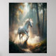 Un cheval blanc courant à travers la forêt