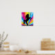 Poster Cheval d'élevage en silhouette Techno arc-en-ciel