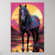 Un cheval violet magnifique dans un style rétro coucher de soleil L'art généré par l'IA