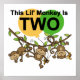 Trois petits singes qui se balancent d'un arbre sur des singes qui battent des T-shirts, costumes, tasses, cartes, sacs fourre-tout, boutons et autres objets pour un thème de singe 2e anniversaire, votre enfant va adorer!