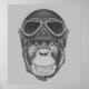 Ce dessin présente le portrait d'un chimpanzé portant un casque et un goggle vintages pour moto.