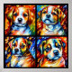 C'est une affiche mignonne parfaite pour un amoureux des chiens avec 4 adorables chiots stylisés aux couleurs vives.