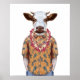 Ce dessin présente un portrait de vache en chemise d'été avec un lei hawaïen.