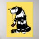Poster de chocolat drôle pour un amoureux des chats avec une illustration d'encre d'un personnage félin bizarre qui aime le chocolat. Vous pouvez le constater par la bagnole du chaton rayé tombant sur le bloc de délicieux miracle sucré qu’il tient.