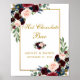 Elégante aquarelle Bourgogne Marsala et Blue Floral Gold Hot Chocolate Bar Poster