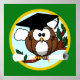 Poster Chouette avec Casquette et diplôme - Vert et Or