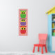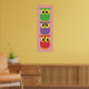 3 chouettes mignonnes sur fond rose. Rouge, violet et vert. Mince, vertical. Convient dans l'espace étroit entre les choses. Chouettes dessinées à la main avec 2 d'entre elles assises au-dessus formant une pile de chouettes mignonnes. parEML