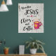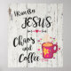 Éclairez votre maison avec cette affiche chrétienne unique "One of a Kind" ! Il présente la citation chrétienne comique..."I Run On Jesus, Chaos and Coffee"... et une tasse de café rose avec du café chaud à la vapeur...Entouré de fleurs et de coeurs colorés! Art graphique original par l'artiste Kerry Miller.