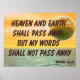 Affiche chrétienne avec verset biblique Marc 13:31. Le Ciel et la Terre disparaîtront, mais Mes paroles ne disparaîtront pas. Un grand don d'inspiration pour les chrétiens ou pour quiconque.
