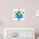 Cartoon monde caractère autour du globe entouré de symboles chrétiens - croix, bible sainte, colombe et symbole de poisson.