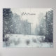 Affiche sur le thème de la nature dans les tons gris et bleu doux : ligne de puissance forestière à la soirée magique enneigée. Idéal pour un intérieur minimaliste, éco ou scandinave.