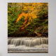 De belles couleurs d'automne sur les arbres encadrent cette large cascade. La cascade s'appelle Quarry Rock Falls et se trouve dans la réserve South Chagrin des Metroparks de Cleveland Ohio.