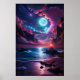 Immergez-vous dans la beauté fascinante d'un poster rêveur avec une lune étonnante accrochée gracieusement dans un ciel peint dans des tons bleu néon et violet enchanteurs, jetant une lueur magique sur un océan serein en contrebas. La scène tranquille saisit l'essence de la paix et de la tranquillité, vous invitant à vous évader dans un monde de calme et de sérénité.