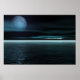 Ciel nocturne sur l'océan avec une grande lune et l'île.