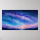 Ce design d'aquarelle enchanteur saisit la beauté sereine d'une scène cosmique au crépuscule. Un coucher de soleil éclatant surplombe les silhouettes des montagnes, peignant le ciel dans une palette fascinante de violets, de bleus et d'oranges douces. L'étendue céleste ci-dessus est ornée d'étoiles scintillantes et de nébuleuses tourbillonnantes, créant une atmosphère onirique et insolite.