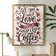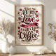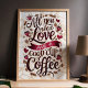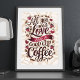 Poster Citation d'amour et de café avec haricots de coeur