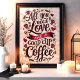Cette charmante muraille combine deux des plus grandes joies de la vie : l'amour et le café. La citation ludique "All You Need is Love and a Good Cup of Coffee" est entourée de fèves de café, tasses et accents cardiaques, ce qui en fait une pièce idéale pour tout amateur de café. Avec ses tons chauds et son design cosy, cette oeuvre ajoute une touche de chaleur et de personnalité aux cuisines, cafés ou cafés.